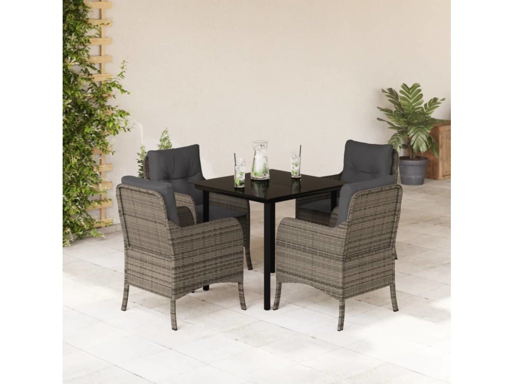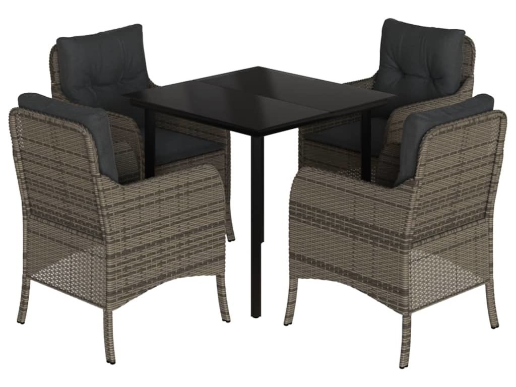 5dílný zahradní jídelní set s poduškami šedý polyratan [3211956]