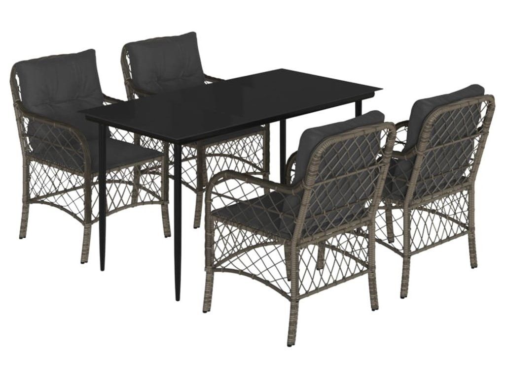 5dílný zahradní jídelní set s poduškami šedý polyratan [3212126]