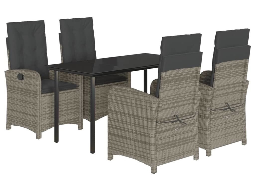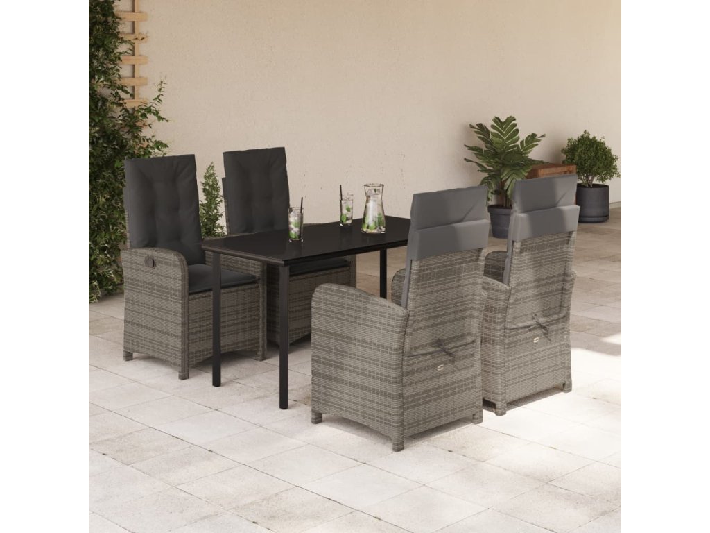 5dílný zahradní jídelní set s poduškami šedý polyratan [3212363]