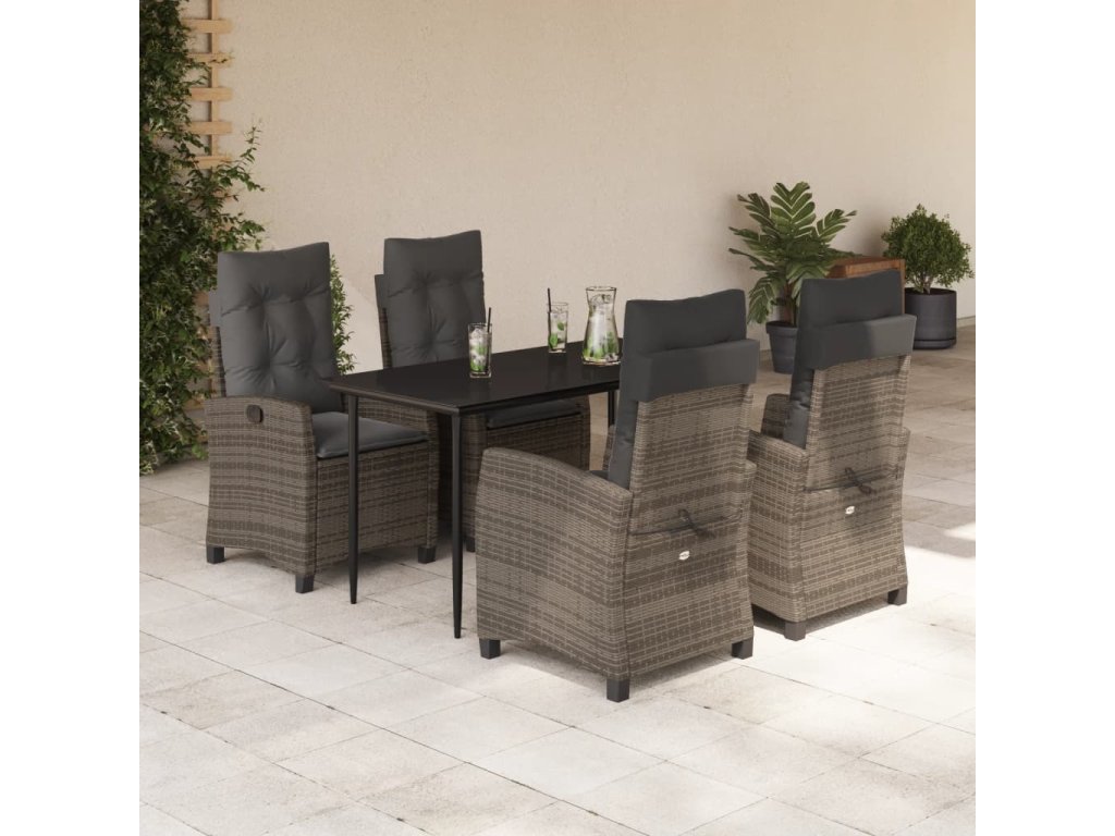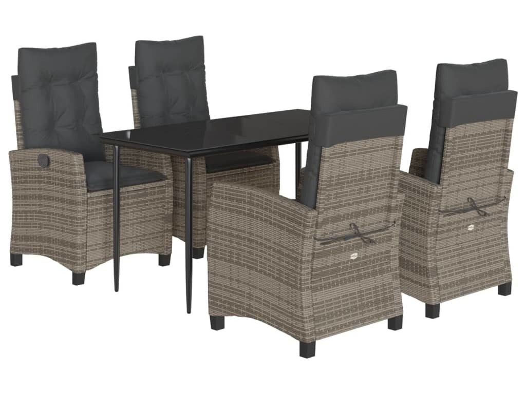 5dílný zahradní jídelní set s poduškami šedý polyratan [3212785]
