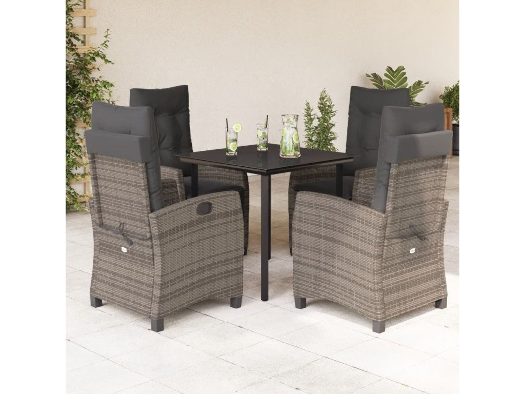 5dílný zahradní jídelní set s poduškami šedý polyratan [3212794]