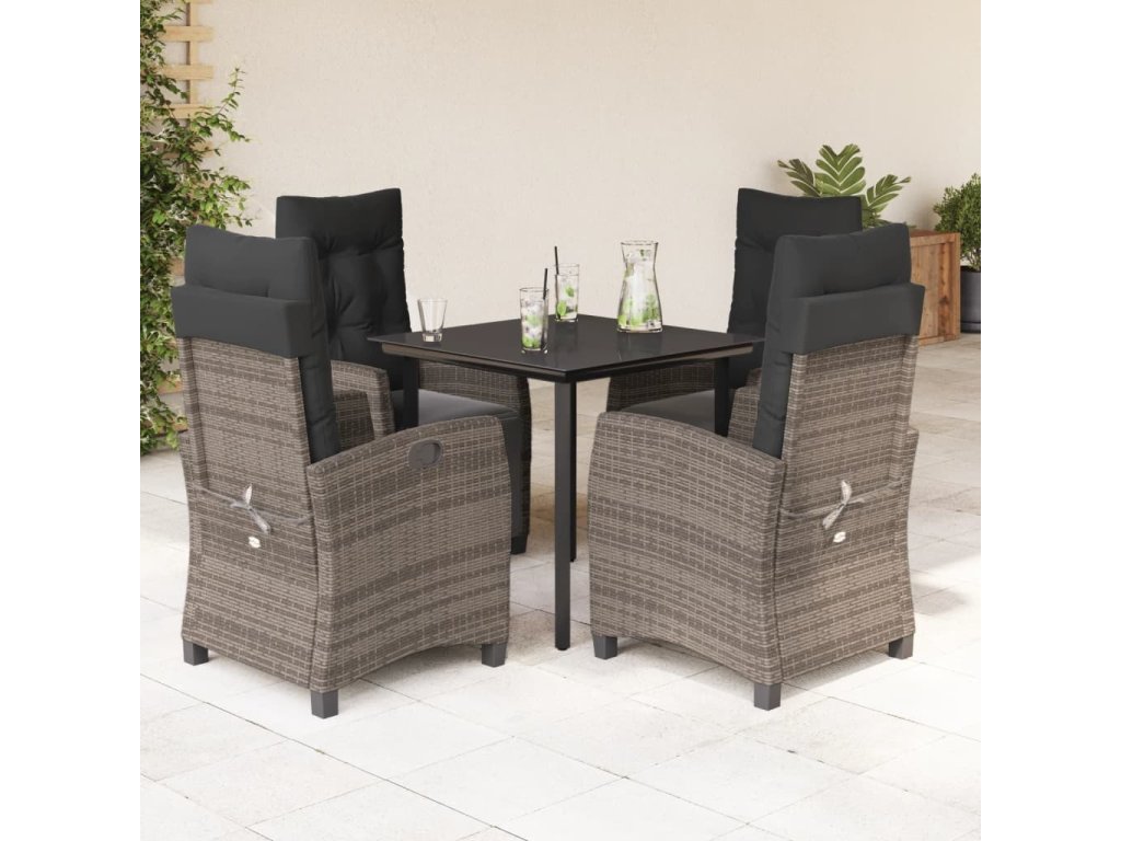5dílný zahradní jídelní set s poduškami šedý polyratan [3212996]