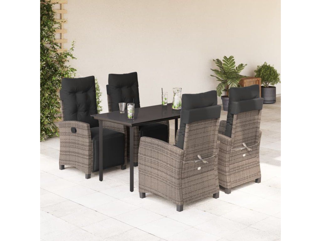 5dílný zahradní jídelní set s poduškami šedý polyratan [3212997]