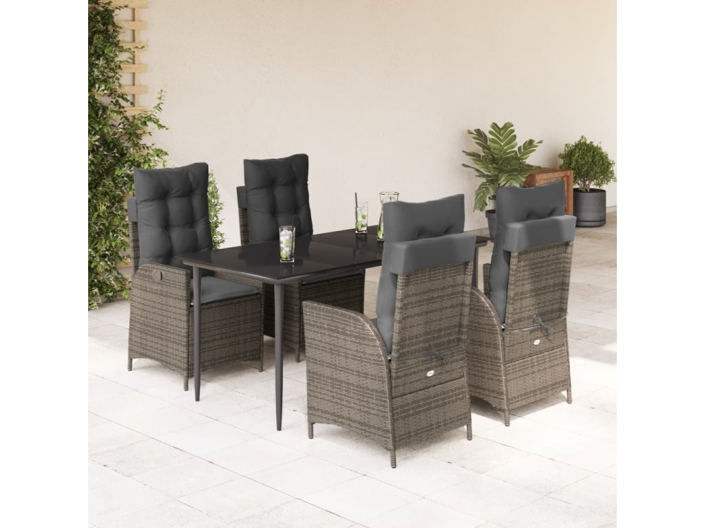 5dílný zahradní jídelní set s poduškami šedý polyratan [3213218]