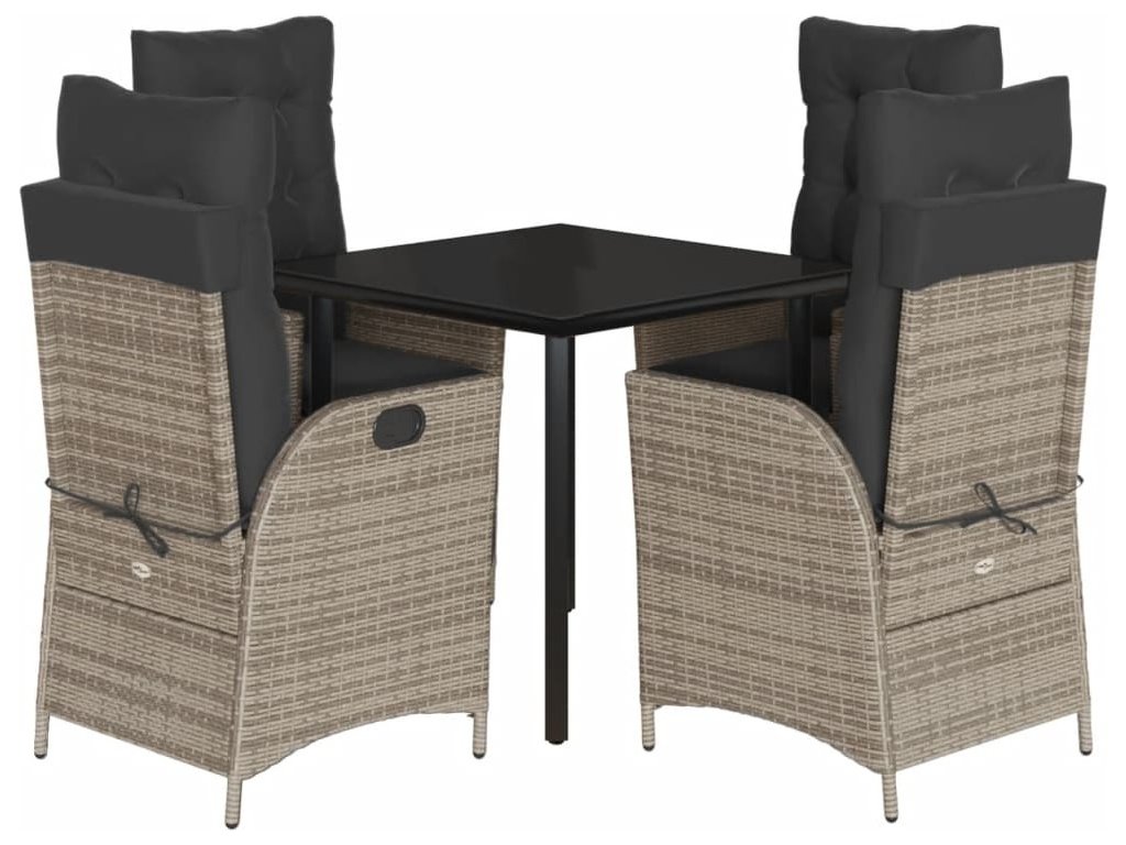 5dílný zahradní jídelní set s poduškami šedý polyratan [3213428]