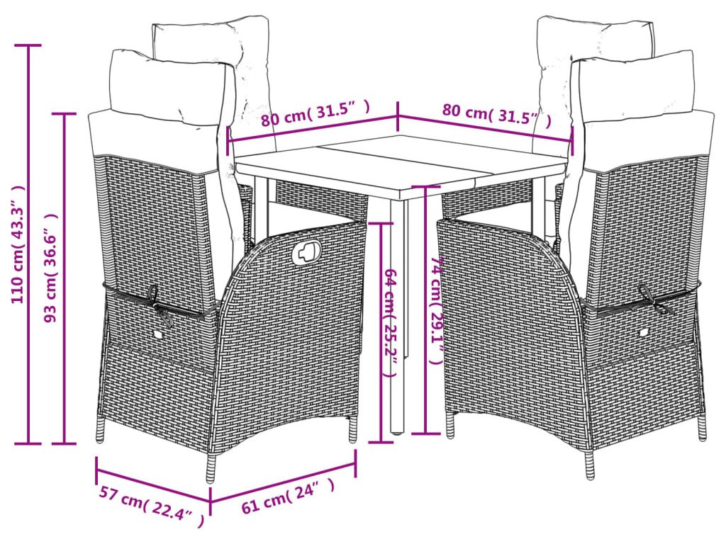 - Rozměry: 80 x 80 x 74 cm (D x Š x V)