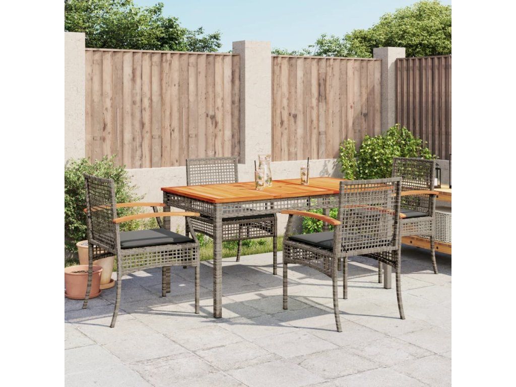 5dílný zahradní jídelní set s poduškami šedý polyratan [3213571]