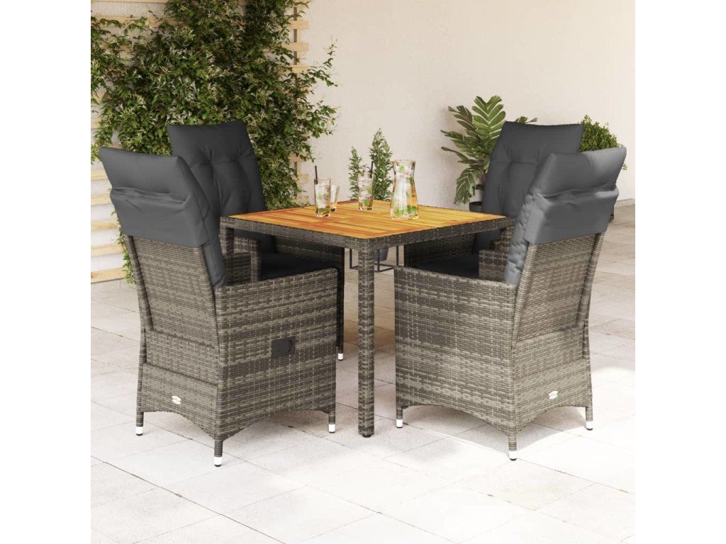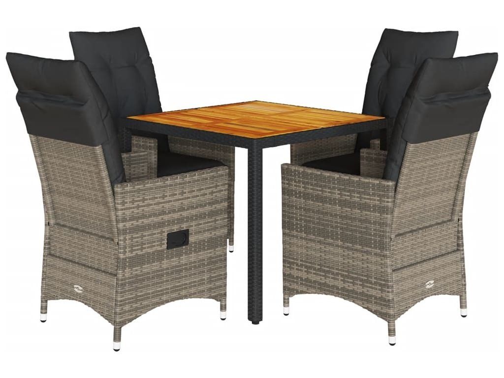 5dílný zahradní jídelní set s poduškami šedý polyratan [3276724]