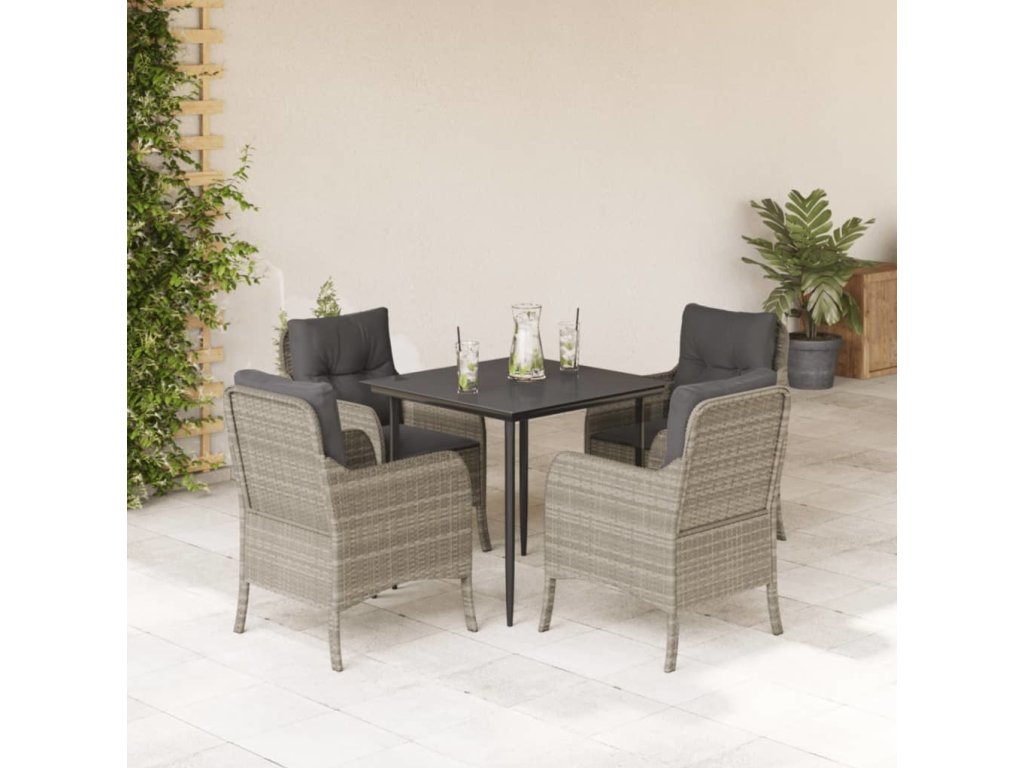 5dílný zahradní jídelní set s poduškami světle šedý polyratan [3211991]