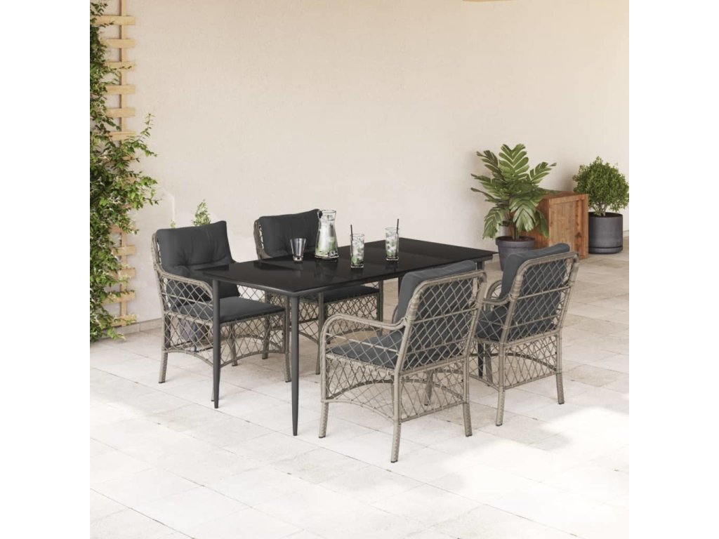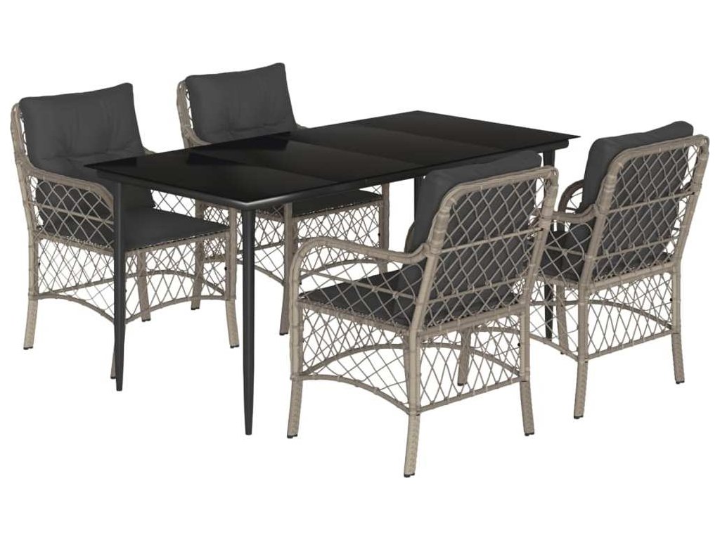 5dílný zahradní jídelní set s poduškami světle šedý polyratan [3212169]