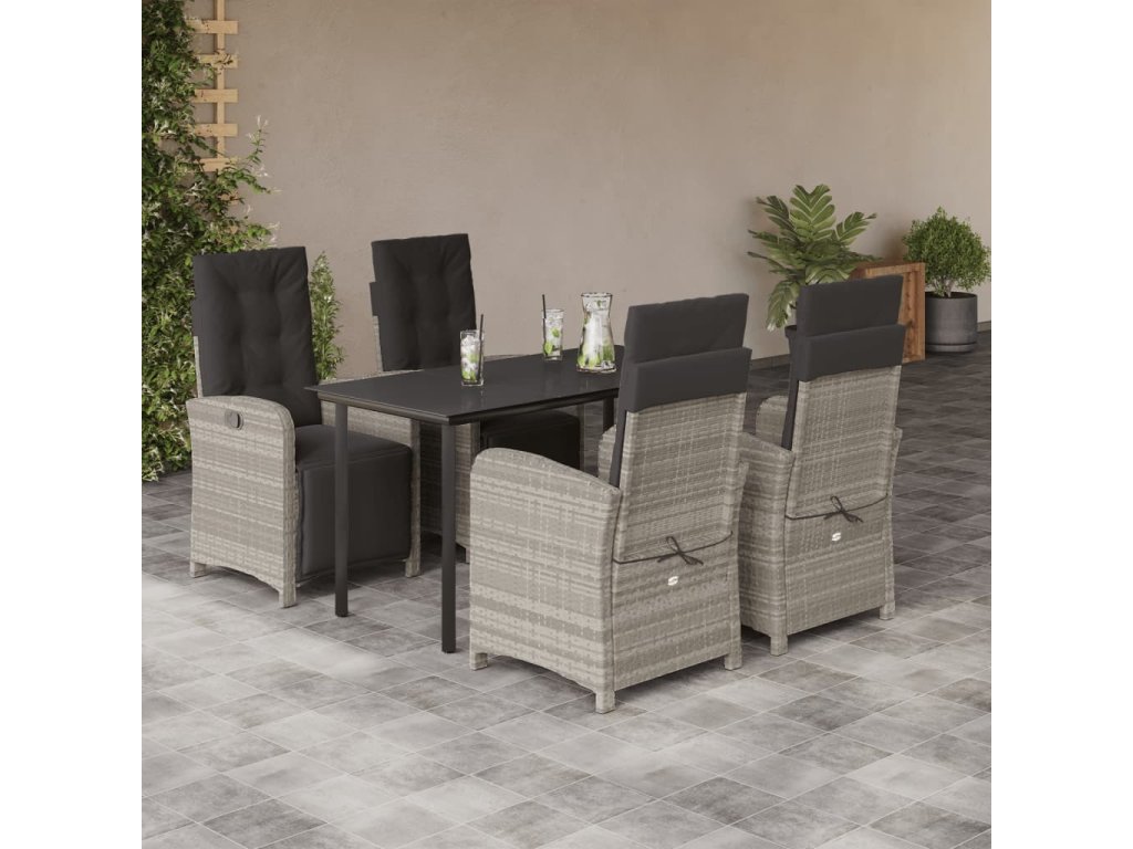 5dílný zahradní jídelní set s poduškami světle šedý polyratan [3212607]