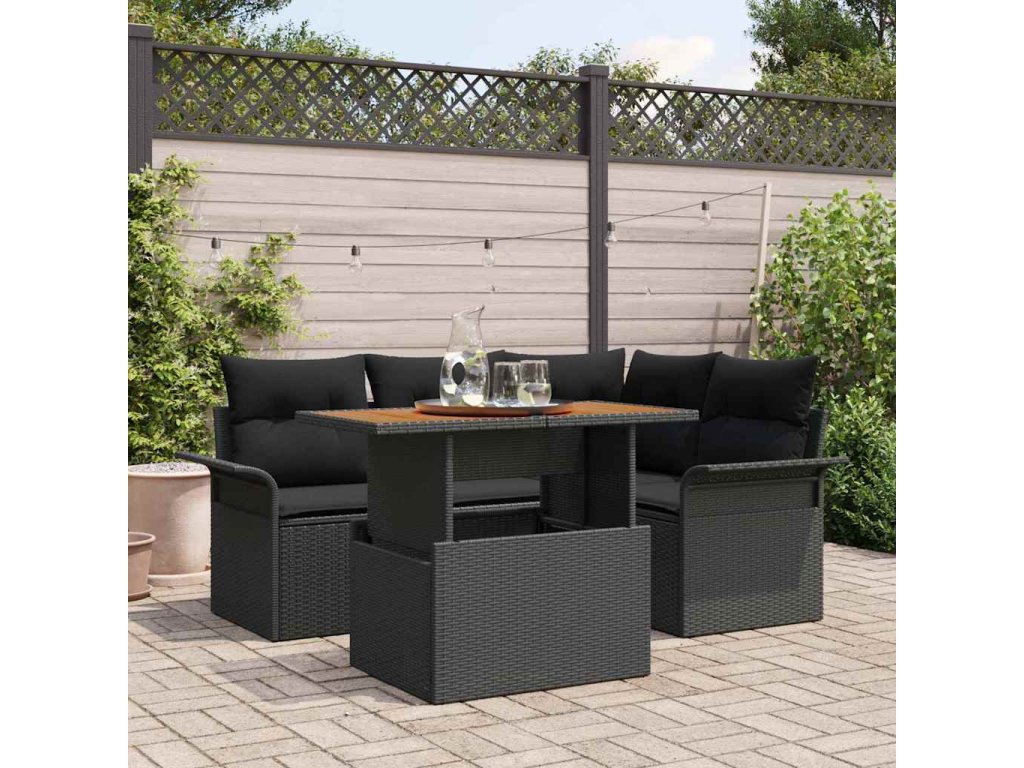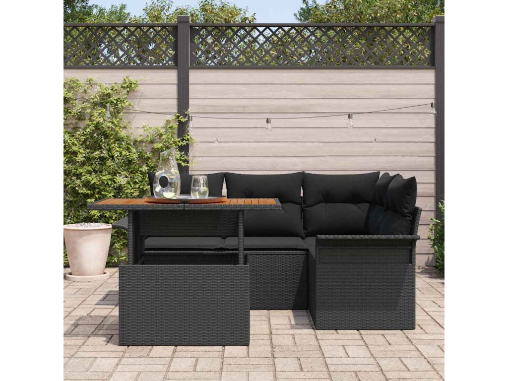 Sada zahradních pohovek s polštářem 5 pcs Černá [3349330]
