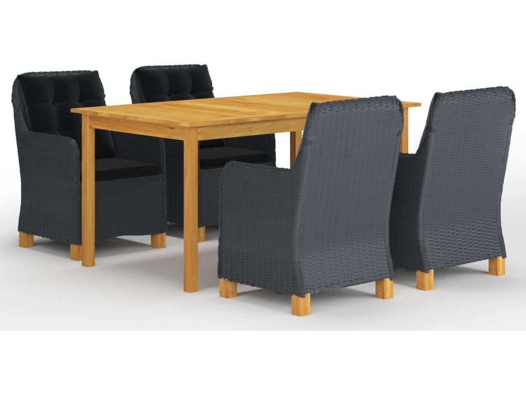 Jídelní stůl je zhotovený z masivního akáciového dřeva s olejovaným povrchem, takže je stabilní, odolný a nenáročný na údržbu. Zahradní židle mají rám z práškově lakované oceli, opletený kulatým PE ratanem, který výborně vzdoruje klimatickým vlivům. Dlouho vám proto vydrží a snadno je očistíte. Hustě polstrované podušky vám při odpočinku zaručí mimořádný komfort. Jejich potahy jsou opatřené zipem, abyste je mohli bez námahy stáhnout a oprat. Nohy z masivního akáciového dřeva přispívají k lepší stabilitě a delší životnosti. Vzhledem k jejich lehké konstrukci lze jídelní židle jednoduše přesouvat, kam potřebujete.