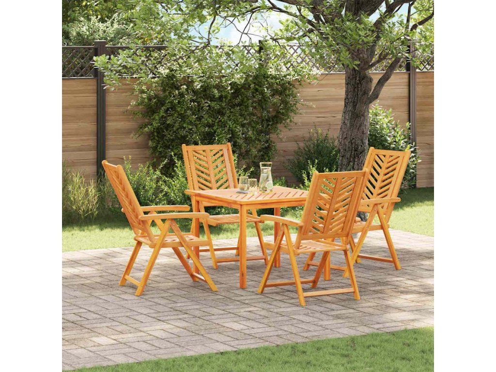 - Součásti Jídelní sada obsahuje příjemně tvarovaná opěradla, ergonomické opěrky, robustní nohy a hladký povrch, což vytváří jednotný vzhled. Každý prvek je pečlivě sladěn do bohatého hnědého odstínu pro moderní estetiku a masivní akáciové dřevo zaručuje sílu a stabilitu pro maximální pohodlí při venkovních jídlech.
