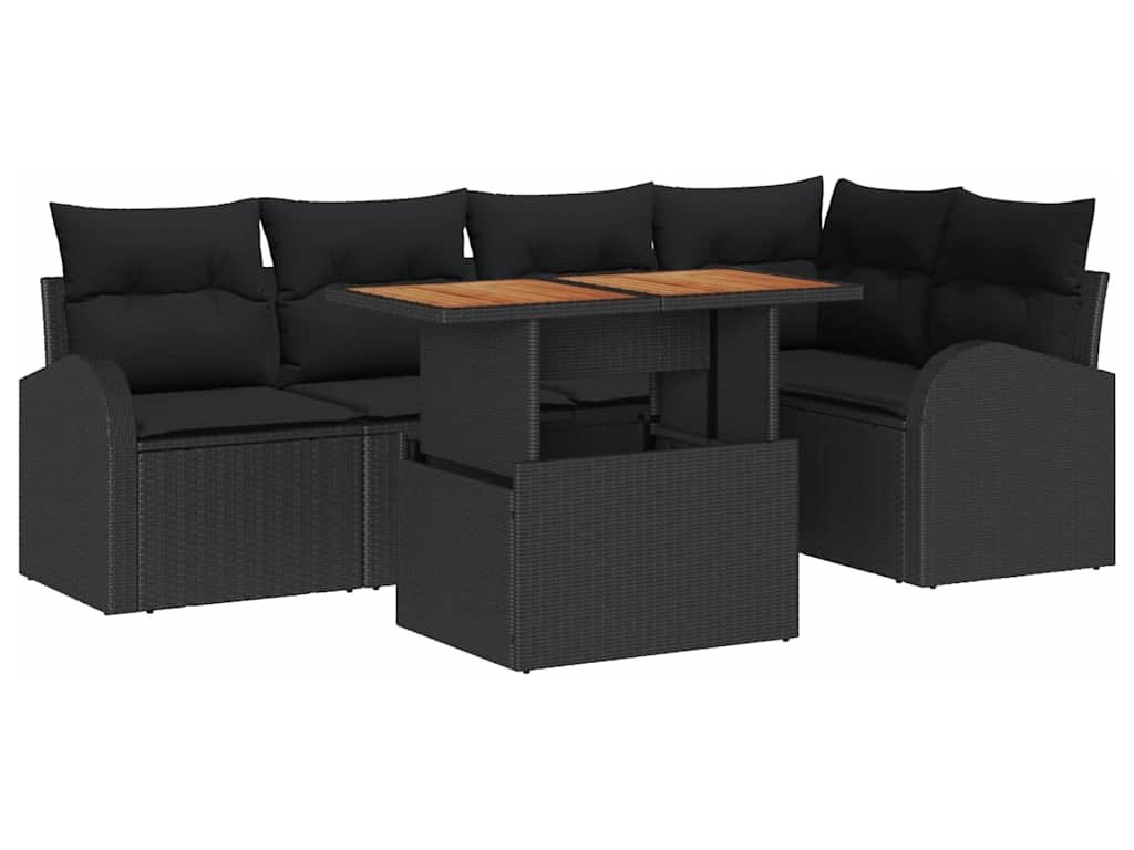 Sada zahradních pohovek s polštářem 6 pcs Černá [3349589]