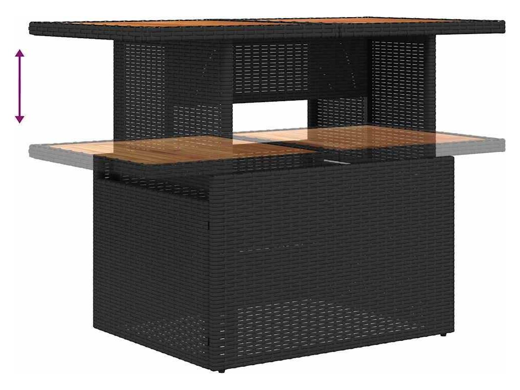 - Odolný materiál: Vyrobeno z kvalitního poly ratanu, co je známý svou pevností, set obsahuje práškově lakovanej ocelovej rám pro stabilní a dlouhotrvající konstrukci. Povrchy z masivního akáciovýho dřeva dodají přírodní, teplej pocit, ideálně se hodí do venkovního prostředí a zvládne i špatný počasí.