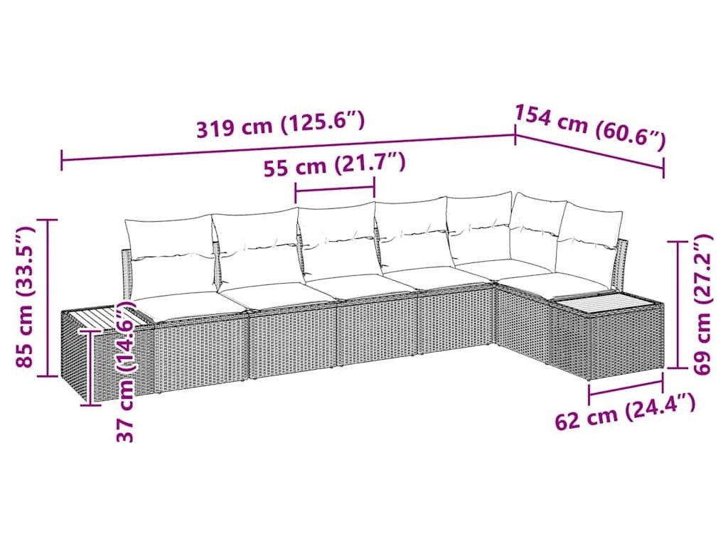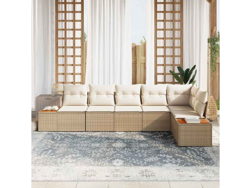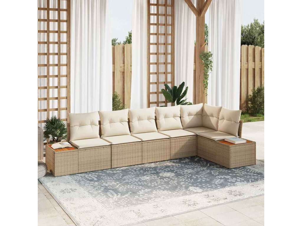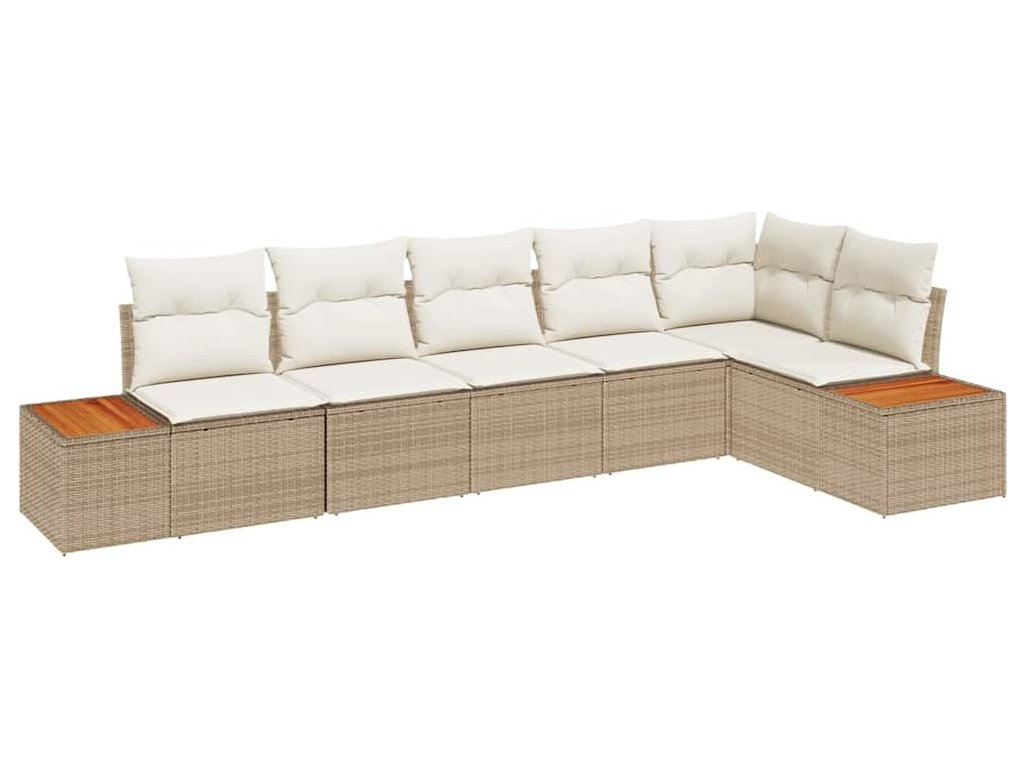 Sada zahradních pohovek s polštářem 6 pcs Béžová Poly ratan [3348097]