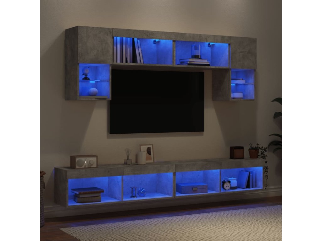- RGB LED světla: TV jednotka je vybavena živými RGB LED světly. Různé přizpůsobitelné nabídky vám umožní snadno změnit barvu světel nebo dokonce i nastavit světla tak, aby se přizpůsobila automaticky. Tato LED světla nejen podtrhují moderní vzhled plovoucí TV skříňky, ale také jí dodávají na módním půvabu.