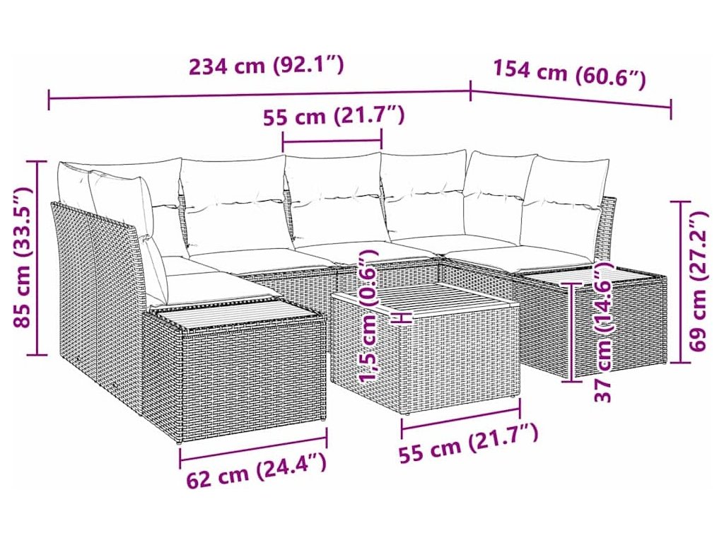 Proměň svůj venkovní prostor na pohodové místo díky této zahradní sedací soupravě z poly ratanu. Je skvělá pro zahrady a terasy, má moderní a elegantní design, který je zároveň funkční. S čistými liniemi a bez zbytečností je navržená tak, aby ti zlepšila zážitek na terase a poskytla krásné místo k lenošení na slunci nebo na posezení pod hvězdami.