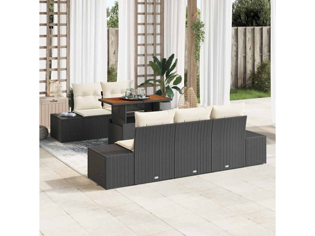 Zahradní jídelní souprava s polštářem 6 pcs Černá a krémová [3349900]