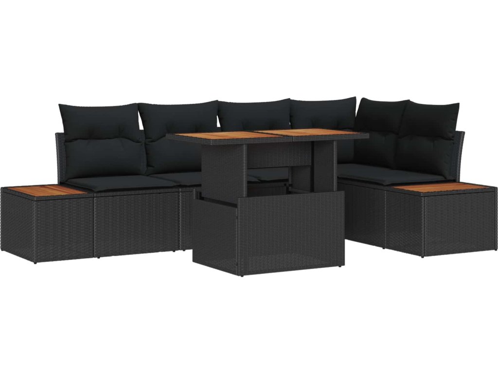 Zahradní jídelní souprava s polštářem 6 pcs Černá a hnědá [3350070]