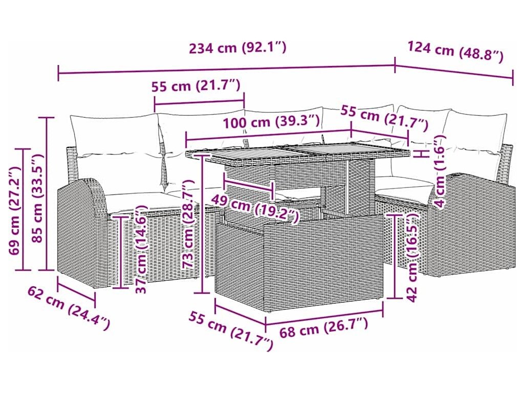 - Kompletní set: Obsahuje 2 křesla se skladováním, rohový sedadlo se skladováním, 2 středový sedadla se skladováním a pořádnej zahradní stůl. Každej kus je navržen tak, aby vám venkovní zážitky zjednodušil, ať už odpočíváte nebo jíte.