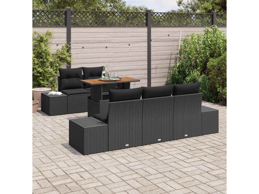 Zahradní jídelní souprava s polštářem 6 pcs Černá a hnědá [3349904]