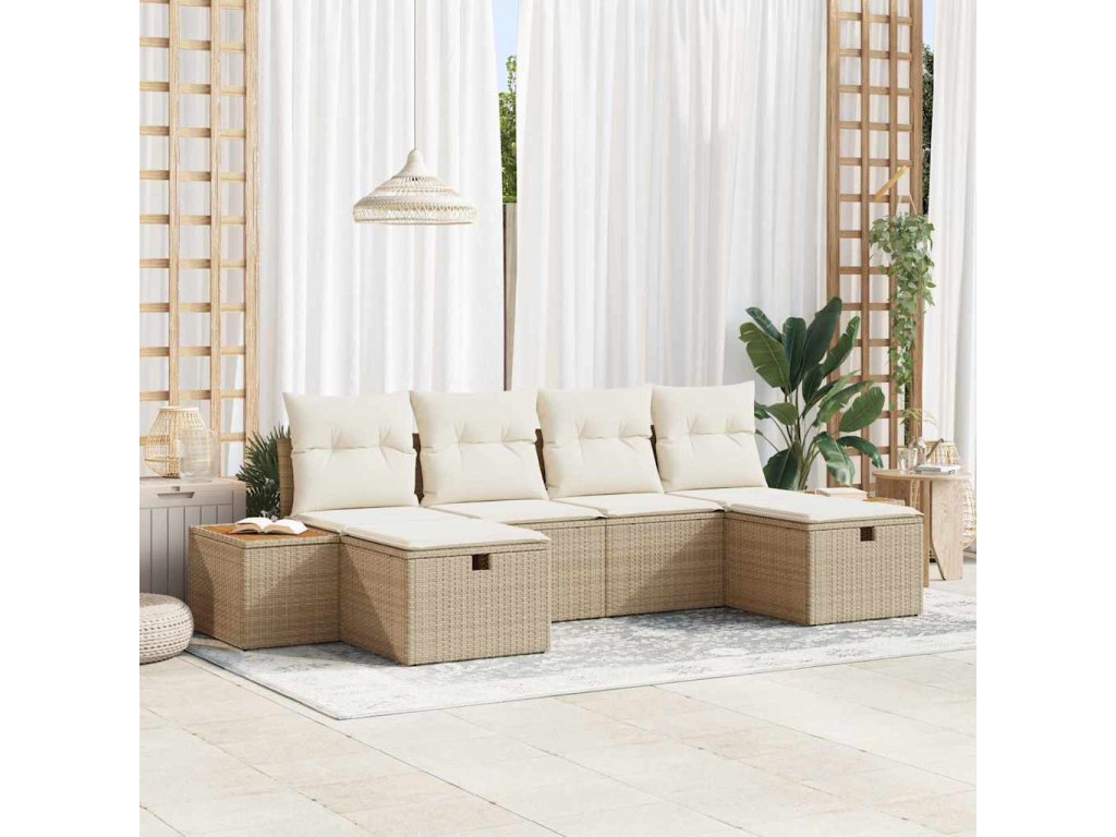 Sada zahradních pohovek s polštářem 6 pcs Béžová Poly ratan [3359653]