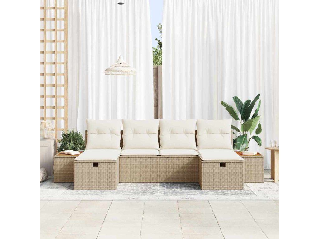 Sada zahradních pohovek s polštářem 6 pcs Béžová Poly ratan [3360985]