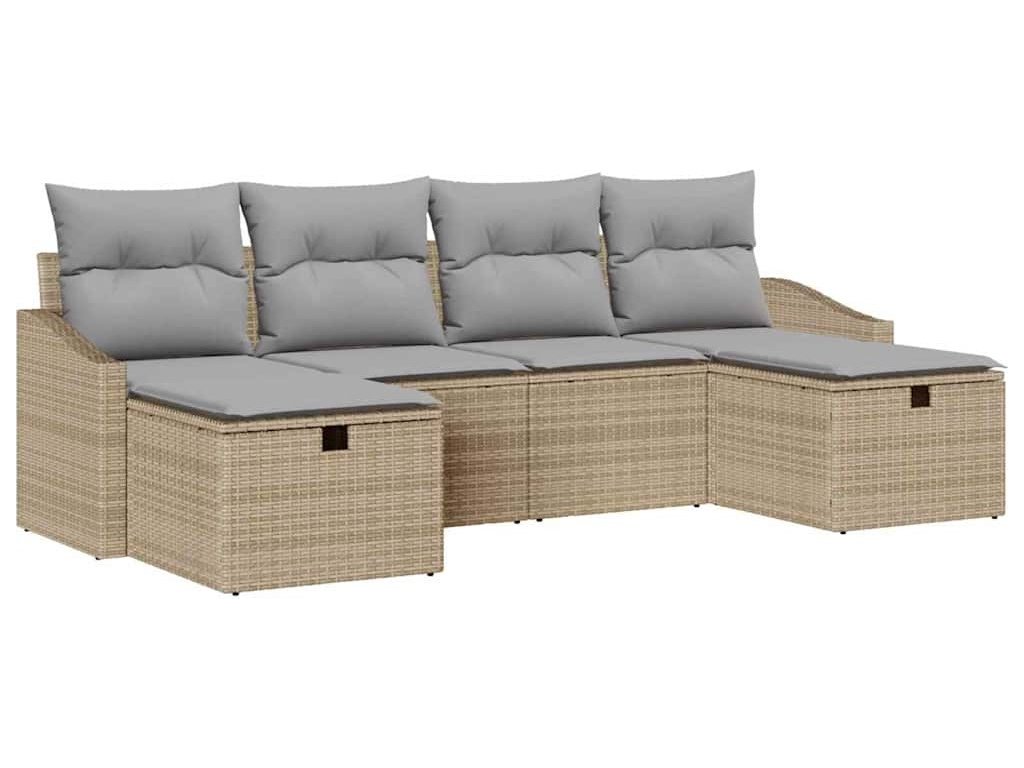 Sada zahradních pohovek s polštářem 6 pcs Béžová Poly ratan [3359319]