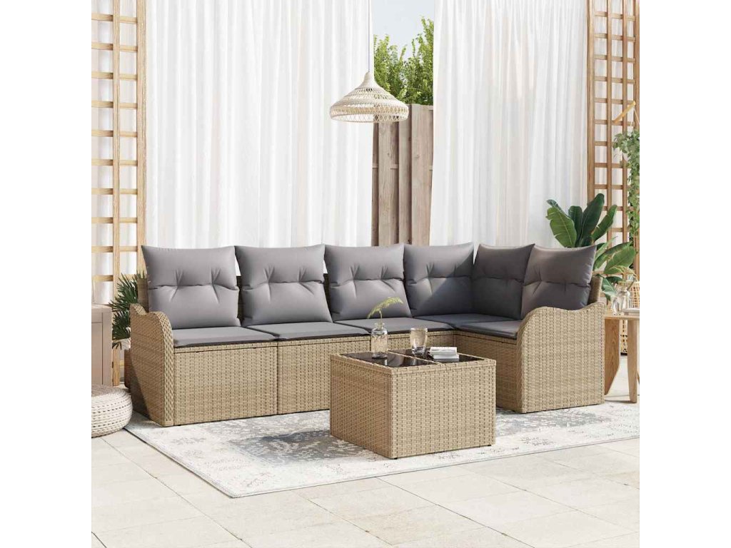 Sada zahradních pohovek s polštářem 6 pcs Béžová Poly ratan [3345710]