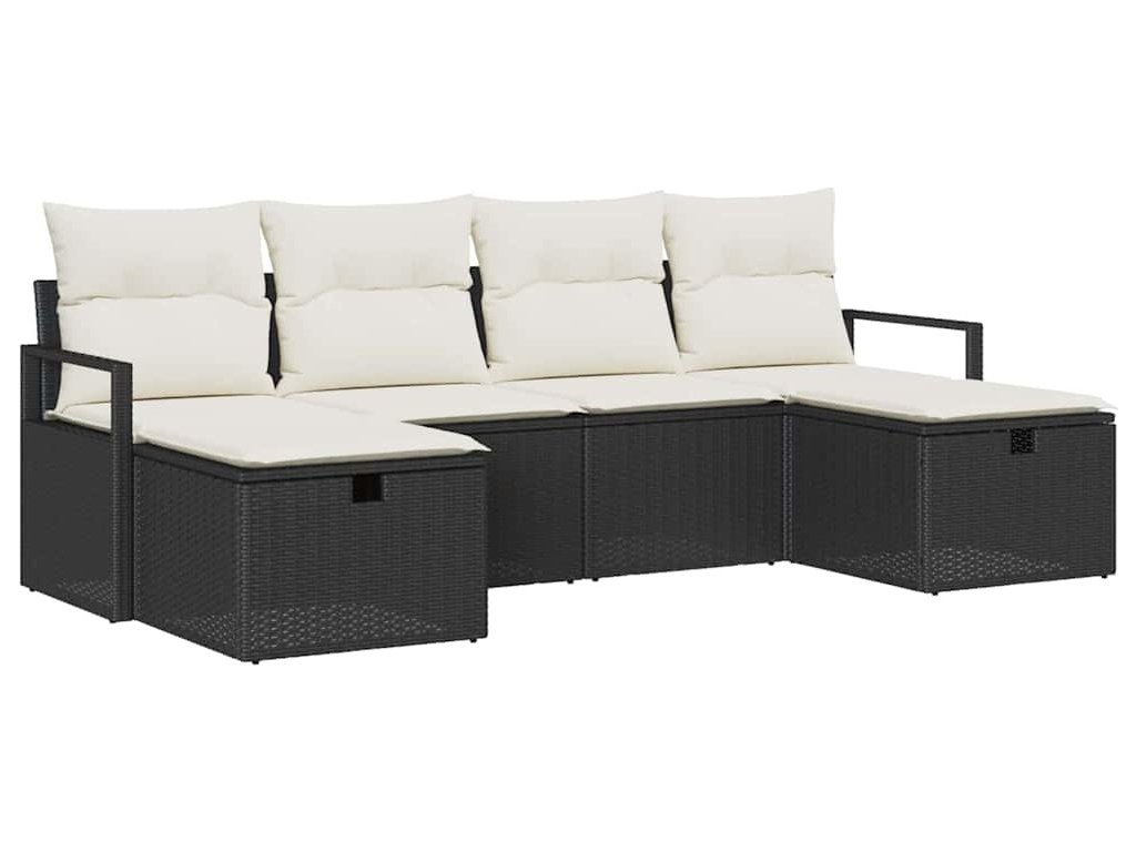Set pohovek s polštářem 6 pcs Černá a krémová polyratan [3359216]