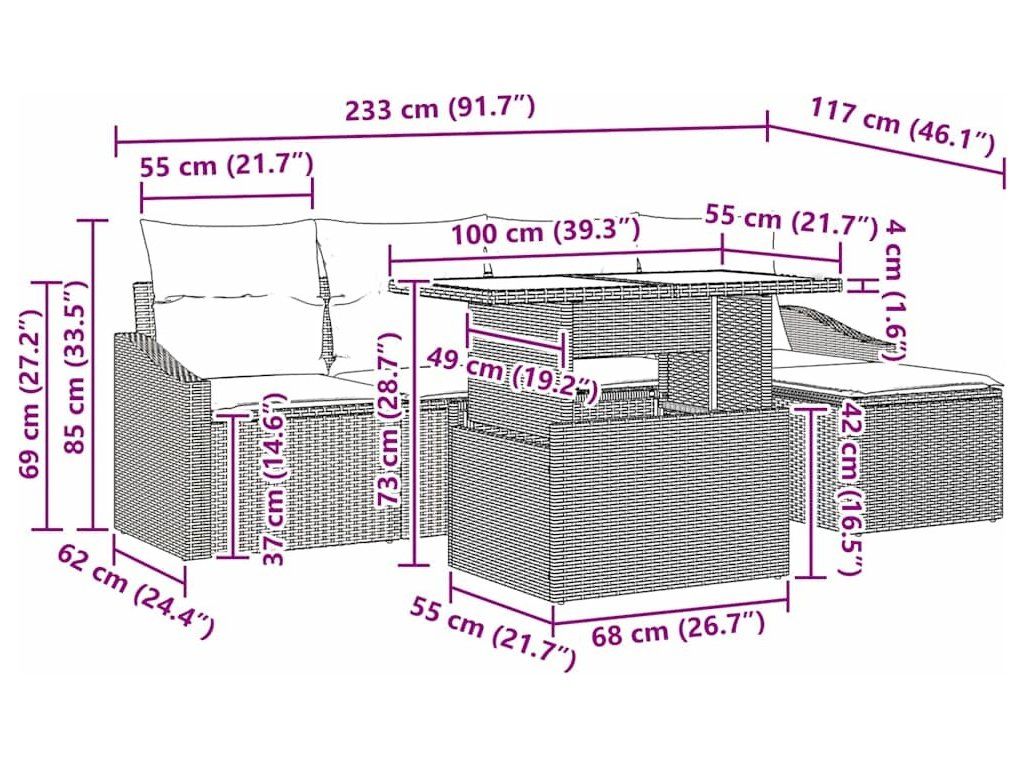 - Funkční vlastnosti: Každý segment gauče se dá snadno přestavit podle vaší potřeby. Lehká konstrukce zaručuje snadné přesouvání, takže můžete změnit uspořádání venkovního prostoru.