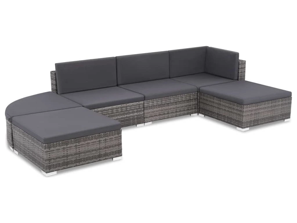 6dílná zahradní sedací souprava s polštáři polyratan šedá [44432]