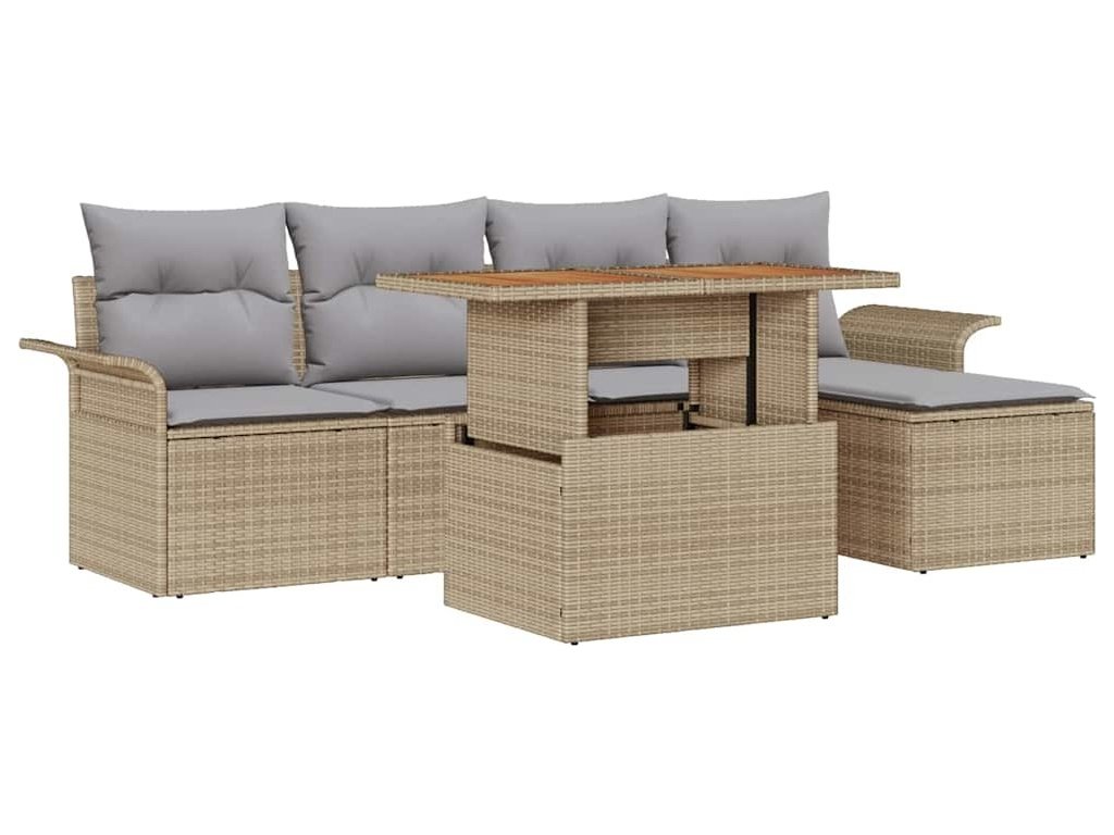 Sada zahradních pohovek s úložištěm 6 pcs Béžová Poly ratan [3358058]