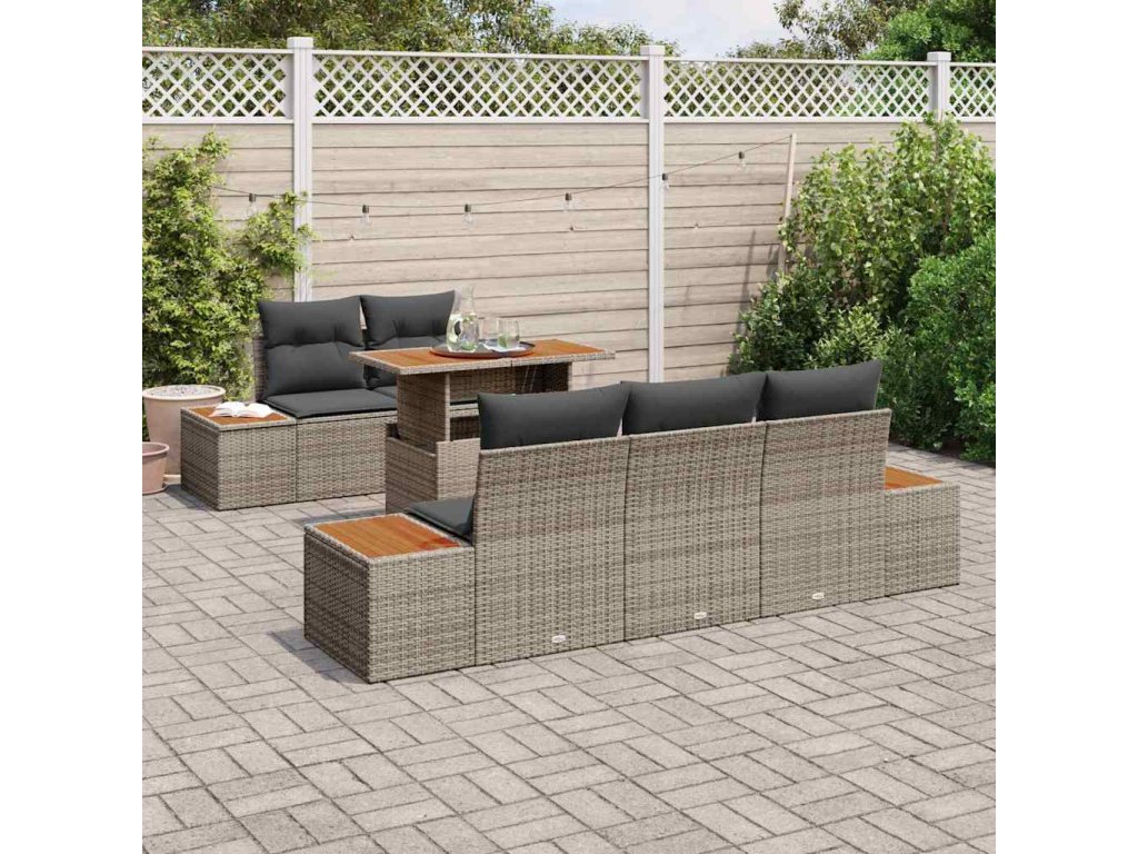 Zahradní jídelní souprava s polštářem 6 pcs Šedá a hnědá [3350026]