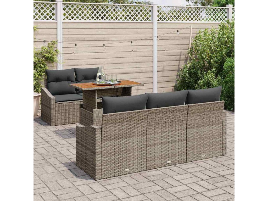 Zahradní jídelní souprava s polštářem 6 pcs Šedá a hnědá [3349775]