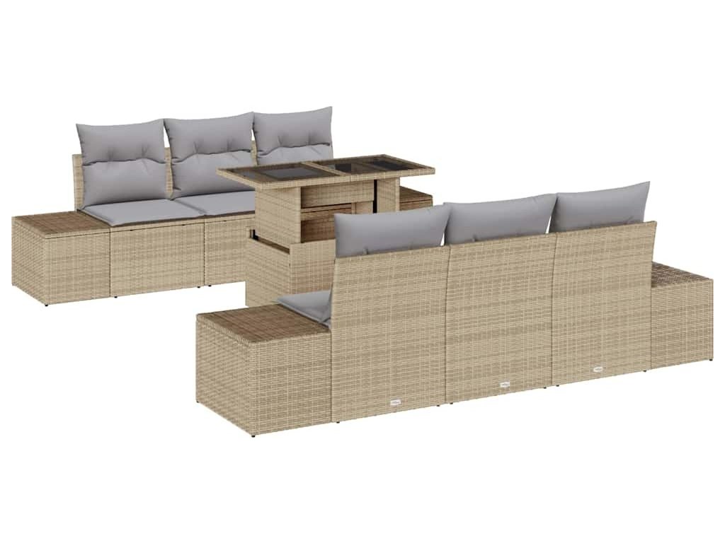 Set pohovek s polštářem 7 pcs Béžová a Světle šedá polyratan [3349106]