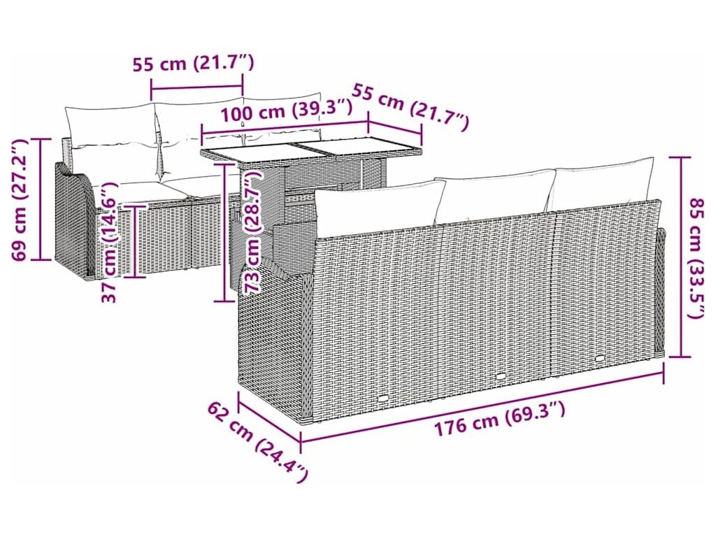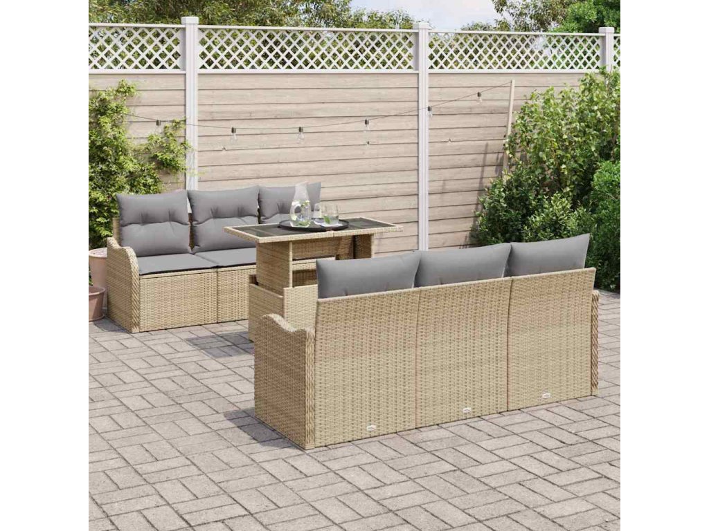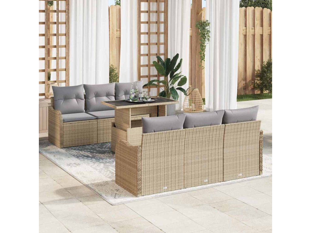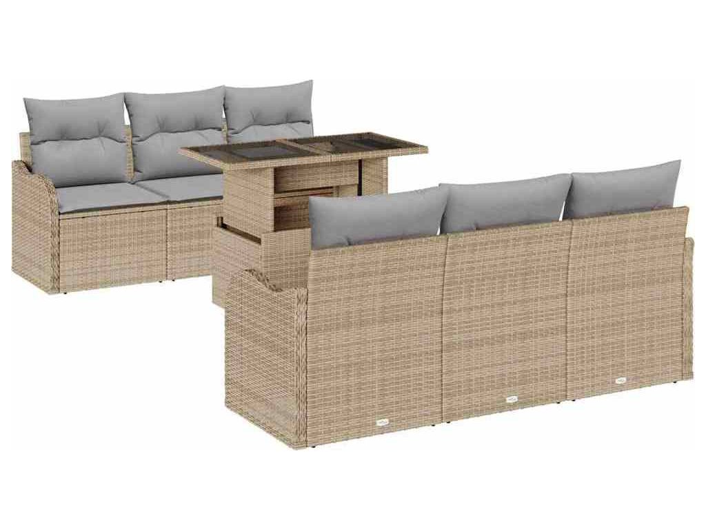 Sada zahradních pohovek s polštářem 7 pcs Béžová Poly ratan [3357123]