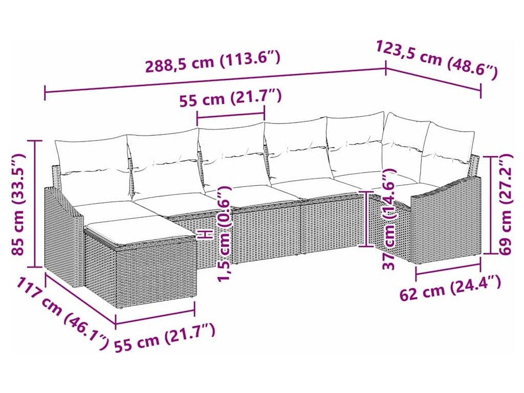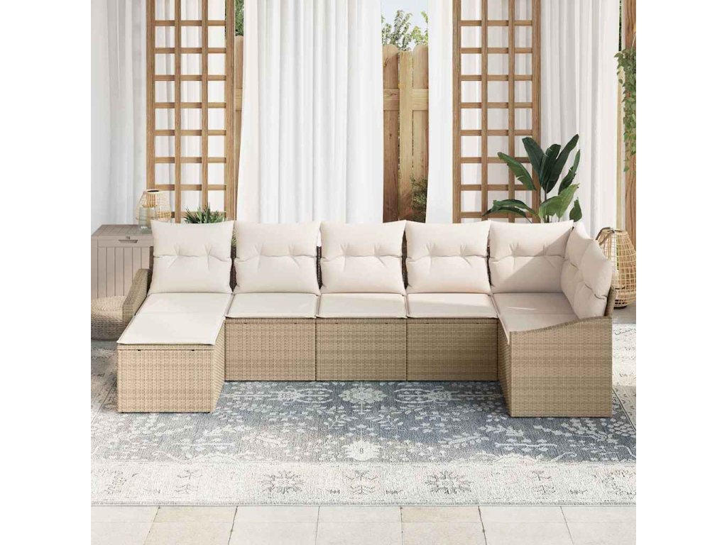 Set pohovek s polštářem 7 pcs Béžová polyratan [3346811]