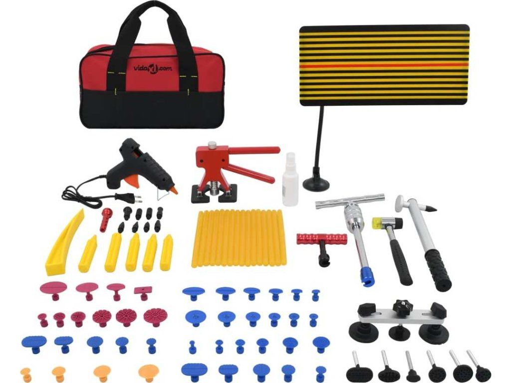 Tato sada pro opravu promáčklin obsahuje všechny nutné nástroje pro odstraňování promáčklin, jako je pruhovaná deska, sada lepících pistolí, sada vytahováků promáčklin, sada pro vyklepávání atd. S touto sadou můžete opravit promáčkliny téměř kdekoli a na jakémkoli vozidle.