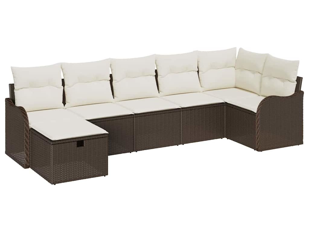 Set pohovek s polštářem s úložištěm Hnědá a krémová polyratan [3358997]