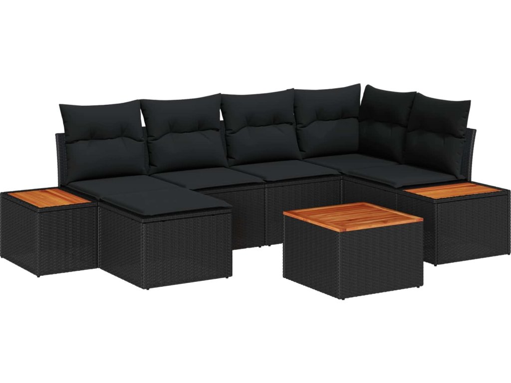 Sada zahradních pohovek s polštářem 7 pcs Černá Poly Ratan [3356793]