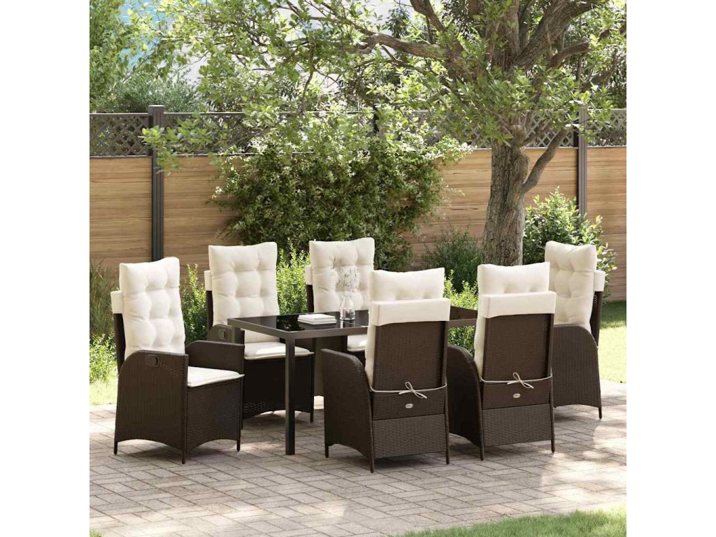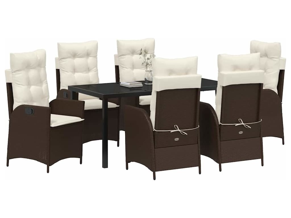 Zahradní jídelní souprava s polštářem 7 pcs Hnědá polyratan [3380495]