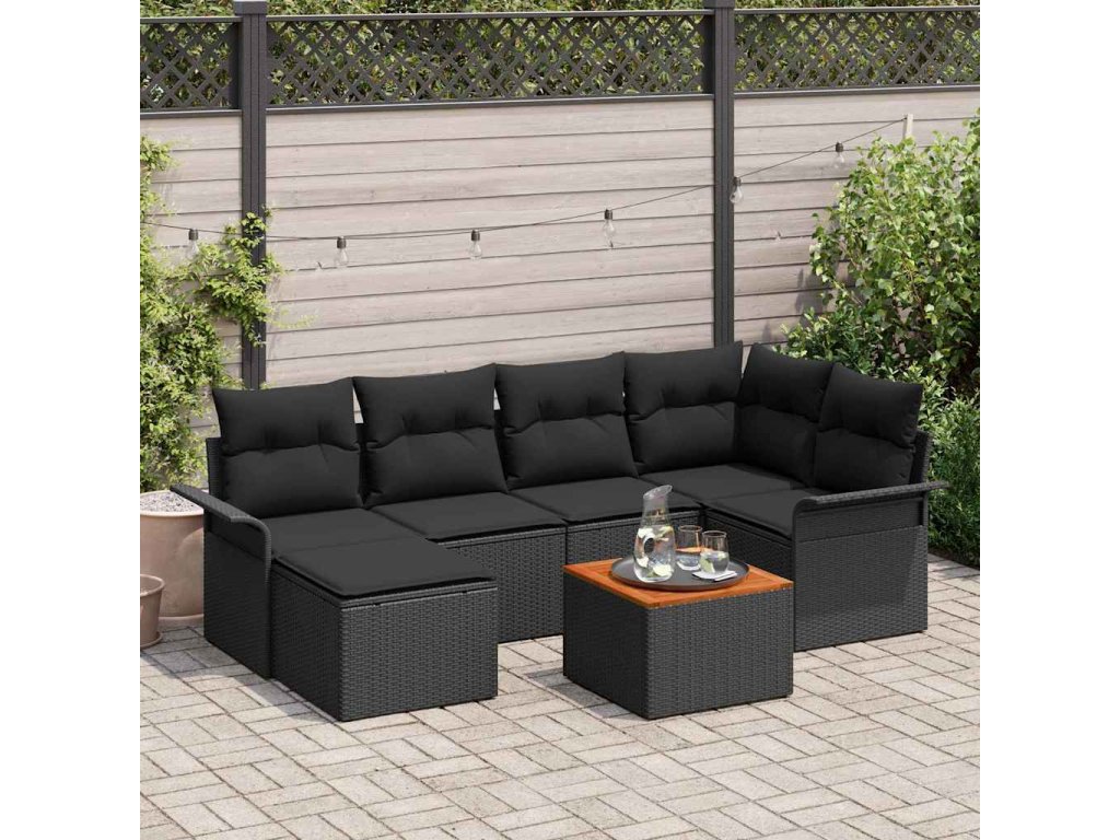 Sada zahradních pohovek s polštářem 7 pcs Černá polyratan [3347352]