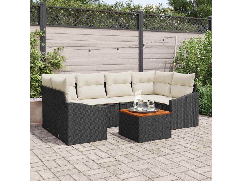 Sada zahradních pohovek s polštářem 7 pcs Černá polyratan [3347782]