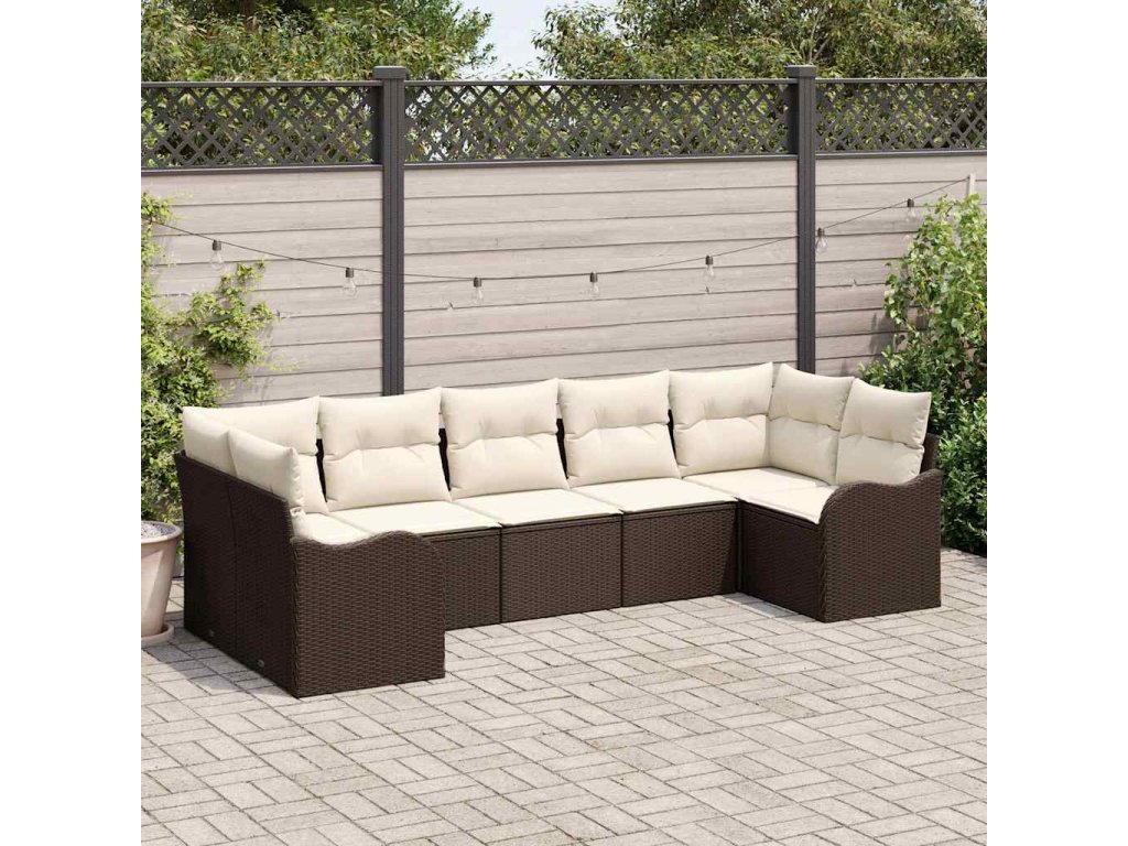 Sada zahradních pohovek 7 pcs Hnědá a bílá Poly ratan [3354517]