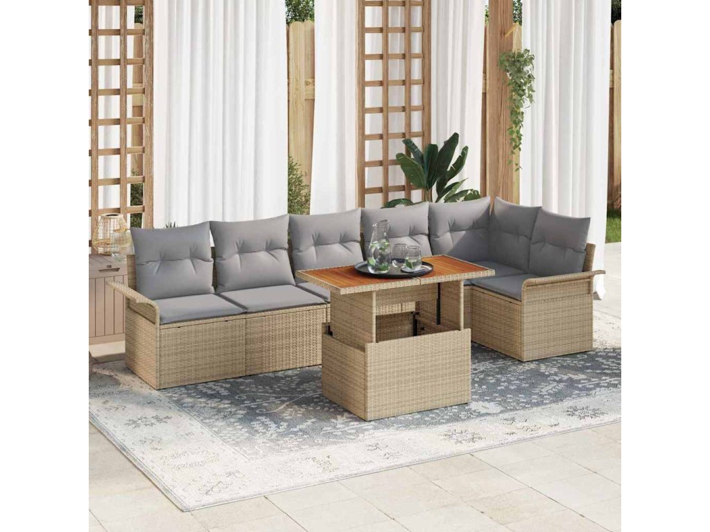 Sada zahradních pohovek s úložištěm 7 pcs Béžová Poly ratan [3358079]