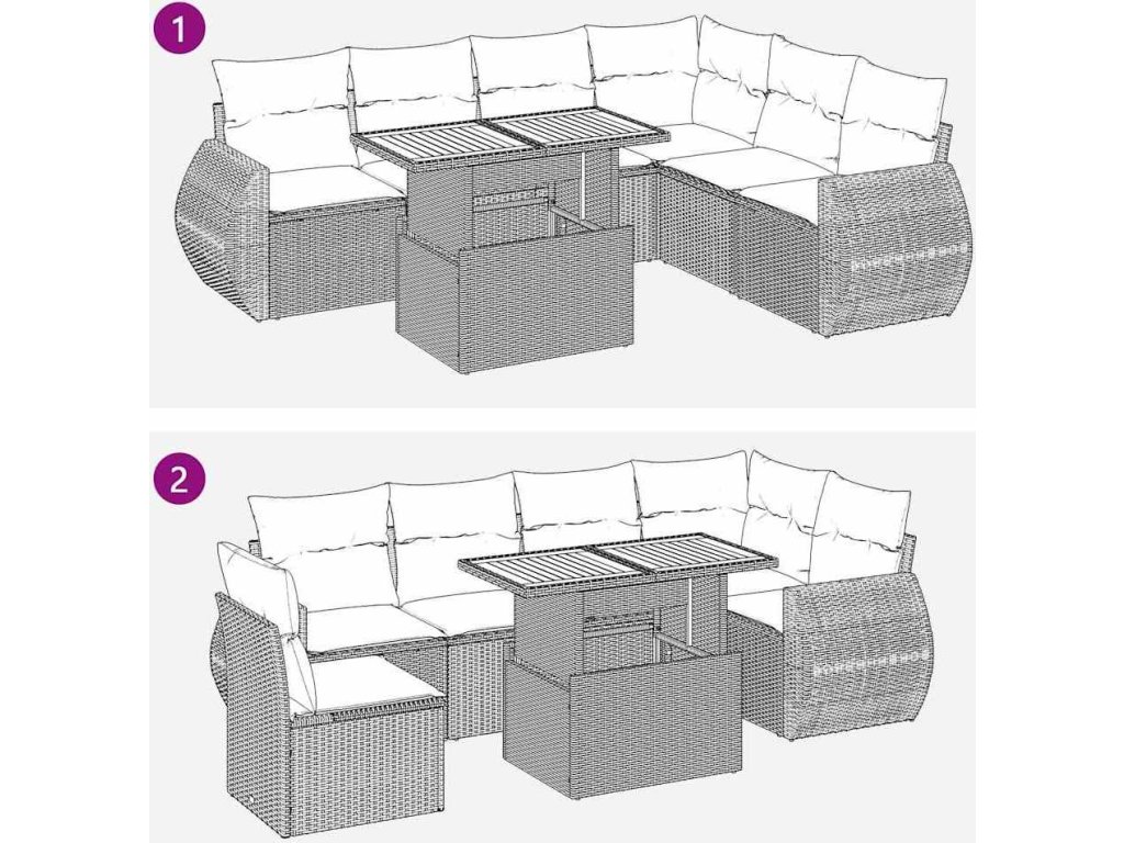 - Modulární design: Tato sada venkovního nábytku se vyznačuje modulární konstrukcí, je tedy zcela flexibilní a lze ji snadno přemisťovat, takže si můžete uspořádat venkovní nábytek dle vašich potřeb.