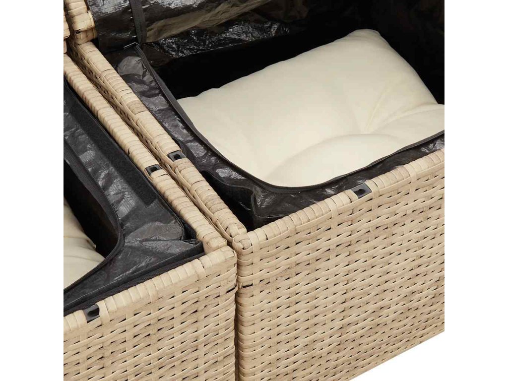 - Úložný prostor s voděodolným vakem: Zahradní nábytek má úložný prostor pod sedákem, který je opatřen voděodolnou vložkou a poslouží vám k ukládání podušek, hraček a dalších věcí. Vnitřní vak lze bezpečně připevnit k venkovnímu nábytku pomocí suchého zipu, což zaručí větší stabilitu.